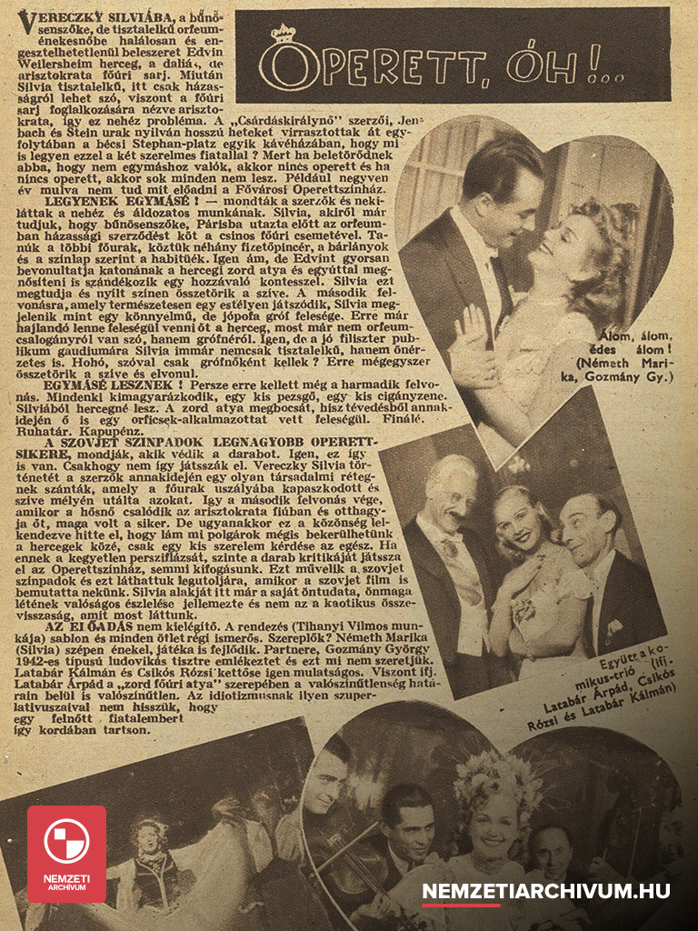 Boritókép: A Csárdáskirálynő bemutatója Békéscsabán. Készítette: Ilovszky Béla. Tulajdonos: MTI Rt. Fotószerkesztőség
