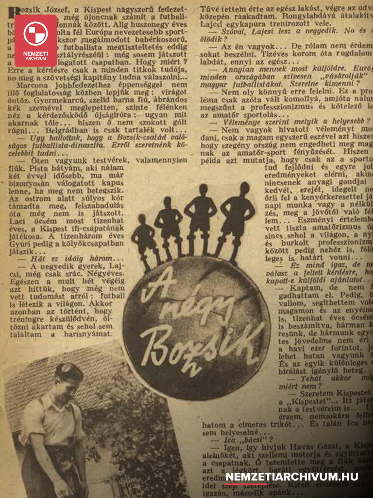 Tekintsék meg a Nemzeti Archívum kínálatában elérhető Magyar történelmi arcképcsarnok című filmsorozat Bozsik Józsefről szóló epizódját, amely korabeli dokumentumok és levelek felhasználásával rajzolja meg az Aranycsapat középpályásának portréját: https://s.mtva.hu/IMjcin1e