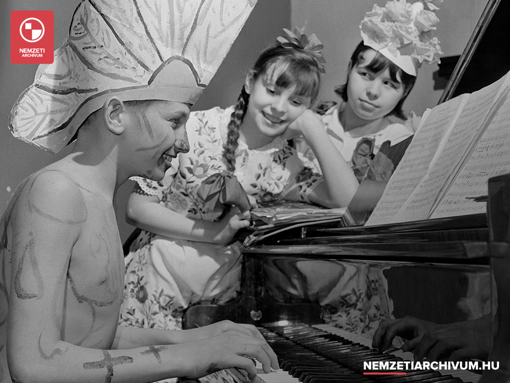- Indián jelmezes fiú zongorázik társainak a farsangi jelmezbálon a Fóti Gyermekváros kultúrtermében (MTI Fotó: Bereth Ferenc)