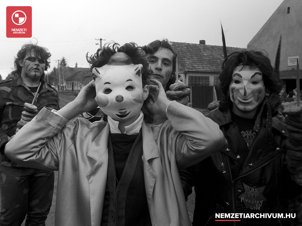 - Jelmezes, álarcos farsangolók sétálnak Elek község főutcáján (MTI Fotó: B. Fazekas László)