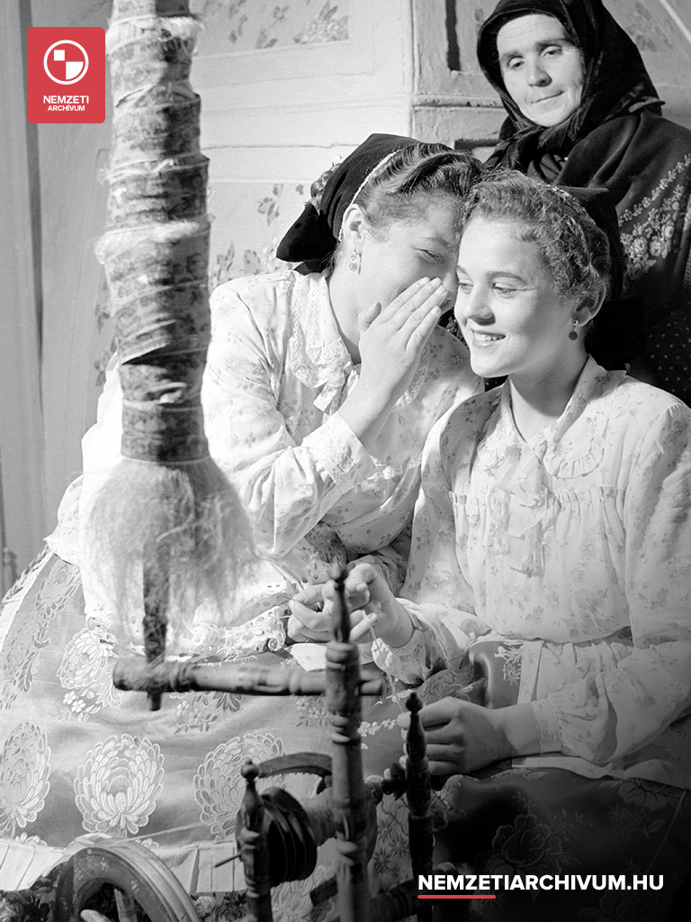 - Budai Mária, Kollár Borbála és Kovács néni a nők farsangján a fonóházban (MTI Fotó: Tormai Andor)
