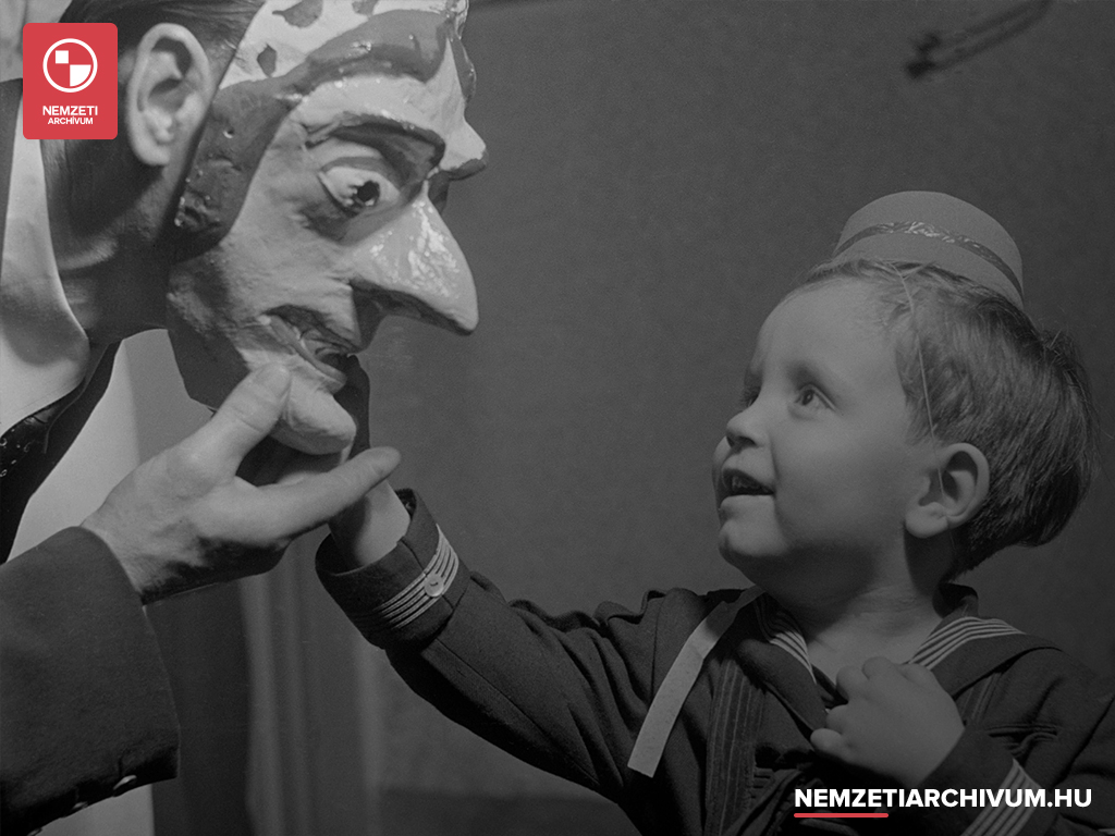 - Sztojka Sanyika egy álarcot figyel a Hőpalack és Üvegipari Vállalat jelmezes farsangi mulatságán (MTI Fotó: Pálmai Simone)
