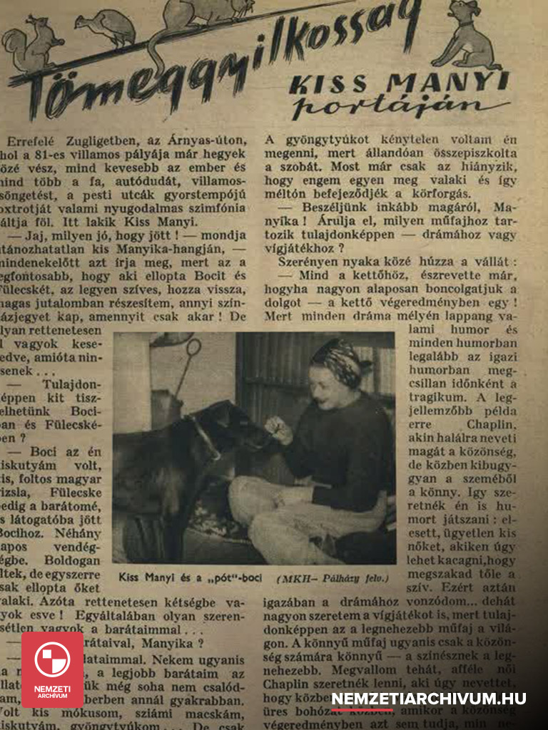 Olvassák el korábbi cikkünket, melyben archív felvételeket láthatnak és hallhatnak a művésznőtől: https://nemzetiarchivum.hu/stories/Kiss-Manyi