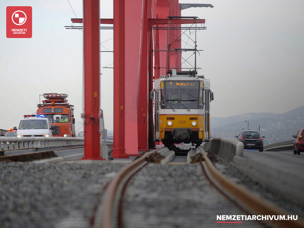 Az ötven év után első új budapesti Duna-hidat 1995. október 30-án adták át. A hídon ekkora már elkészült a villamospálya helye is, de annak befejezésére akkor még nem jutott pénz. A pálya kiépítése 2014-ben kezdődött, a Fehérvári útig vezető vonalszakasz az 1-es villamos felújításával együtt épült meg. A 2015. január 26-i próbafutás során először haladt át villamos a hídon, a próbaterhelések után március 20-án indult meg a villamosforgalom a Fehérvári út felé.